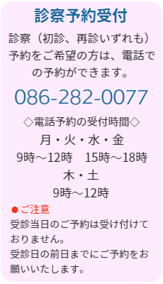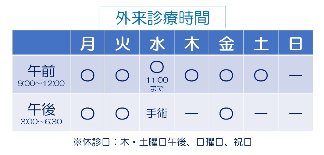 ・状態によって、診察後に追加検査を行い、再診察になる場合もあります。